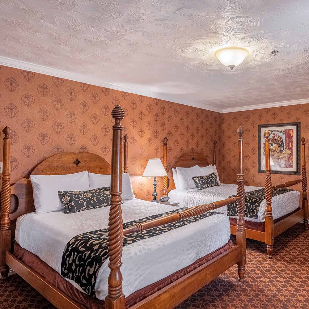A classic and intimate room, perfect for a romantic evening. This spacious and luxurious first or second-floor room is beautifully decorated and includes 2 plush queen-sized beds along with a relaxing spa tub and walk-in shower. The fluffy towels and custom-made toiletries accentuate an already wonderful room to call home to.
